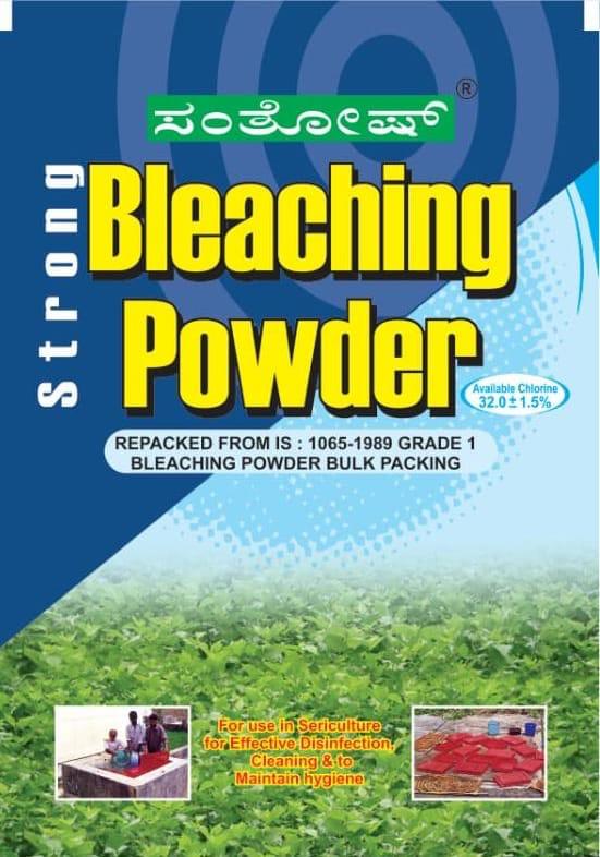 The bleaching powder is sold in the markets under the brand name ‘Santhosh’, which has available Chlorine 34.5% +/- 1.5%. Bleaching powder is a white amorphous powder with a smell of chlorine. For effective disinfection, a high-grade bleaching powder with active chlorine content 30% must be used. The action of bleaching powder is optimal under wet and contact conditions and