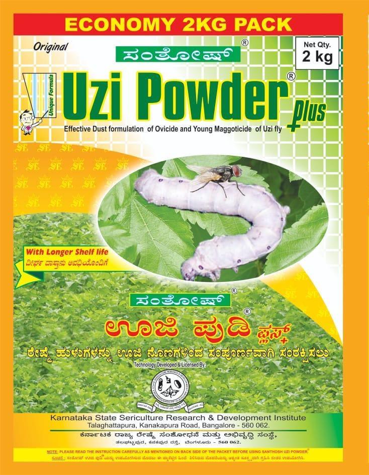 Uzi powder is developed & licensed by of Karnataka State Sericulture Research & Development Institute, Talaghattapura, Bengaluru. Uzi powder is the most effective dust formulation of Ovicide & Maggoticide of Uzi fly and has proven results. Uzi powder is effective in controlling Uzi fly and the yield also